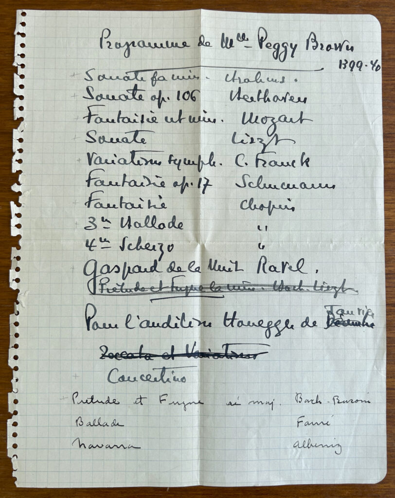 *The starred pieces in the list are the ones from Côrtot’s list of pieces for 1939 (in his handwriting.) I do wonder if she learned all of them in just 1 year?